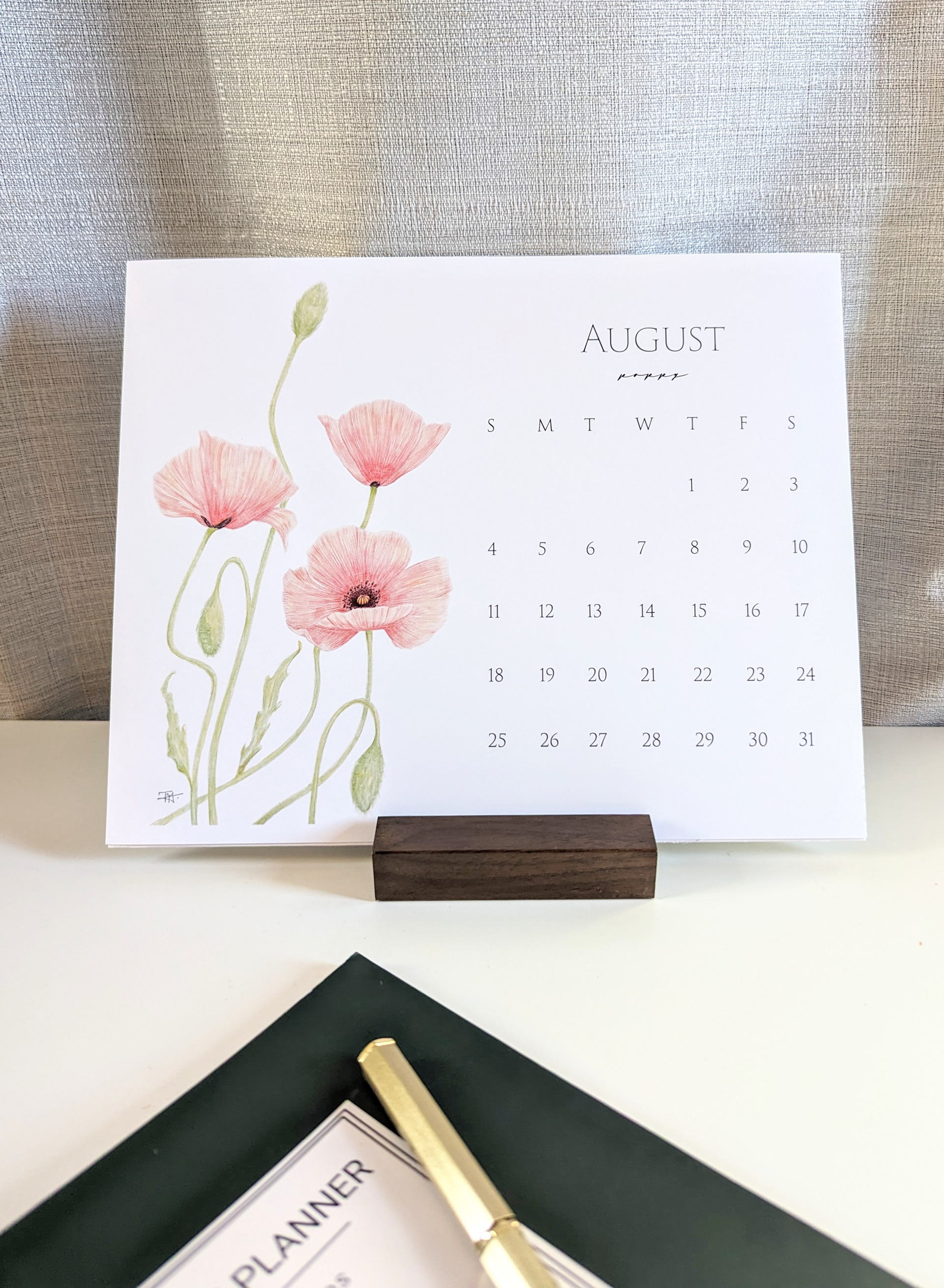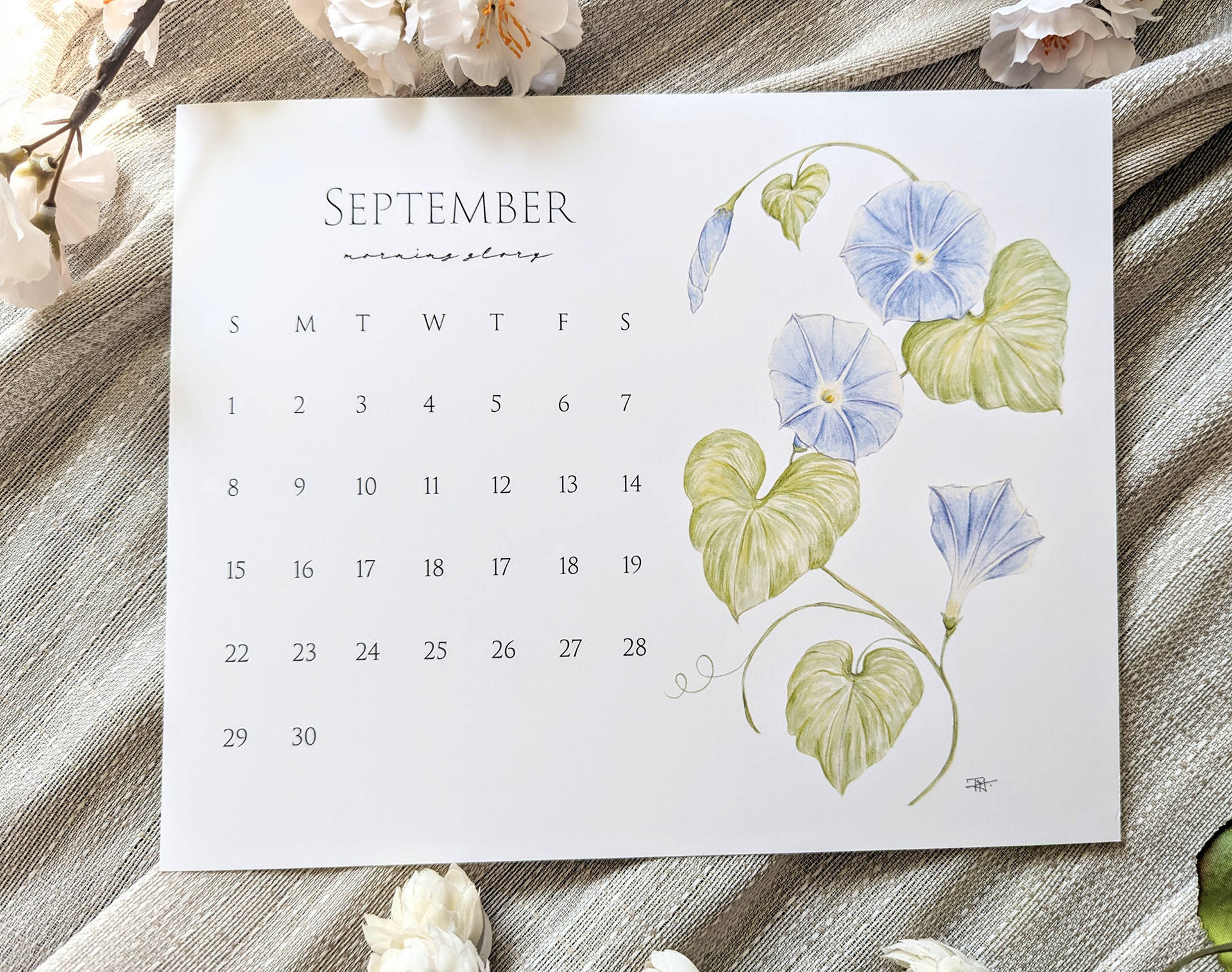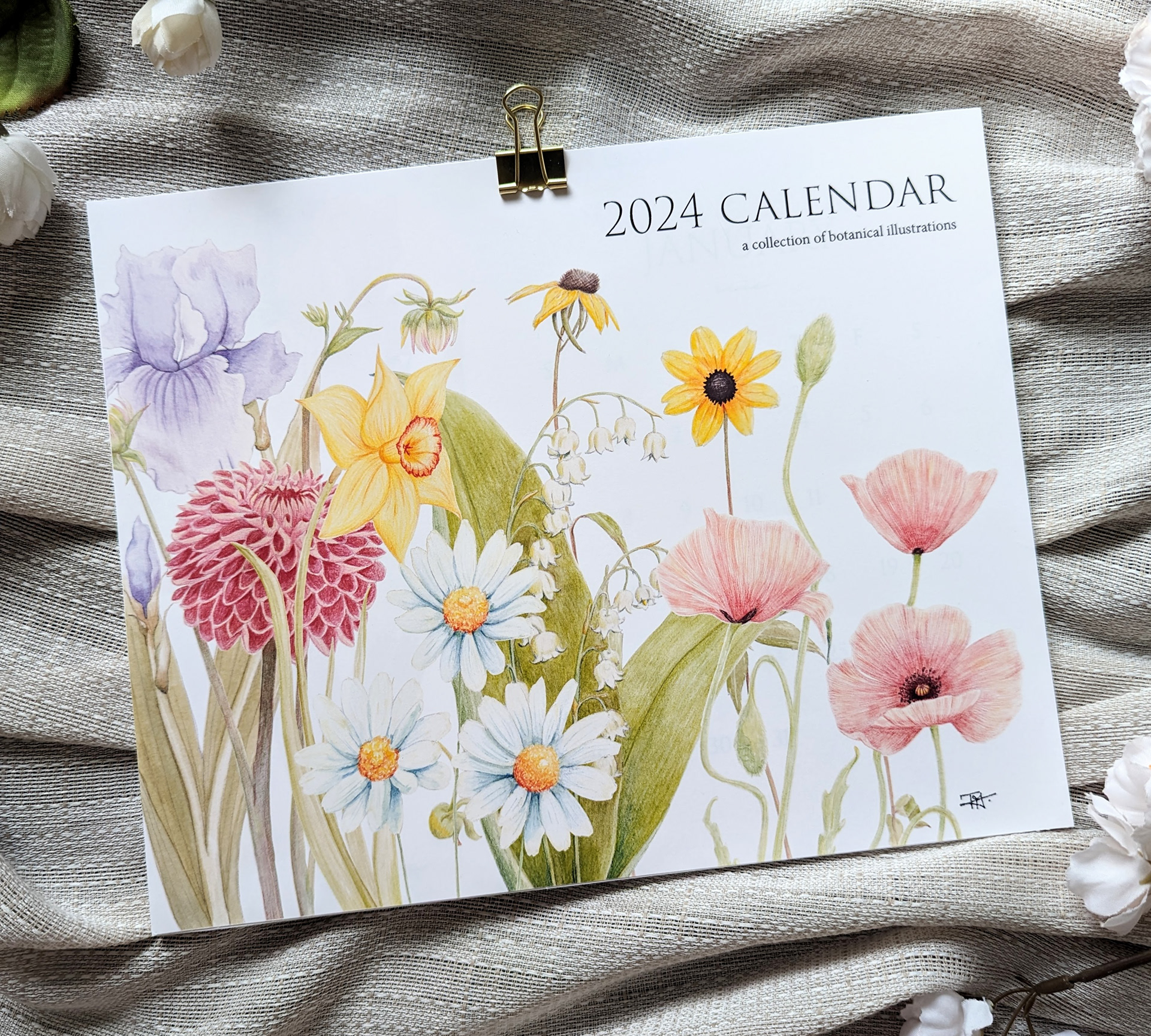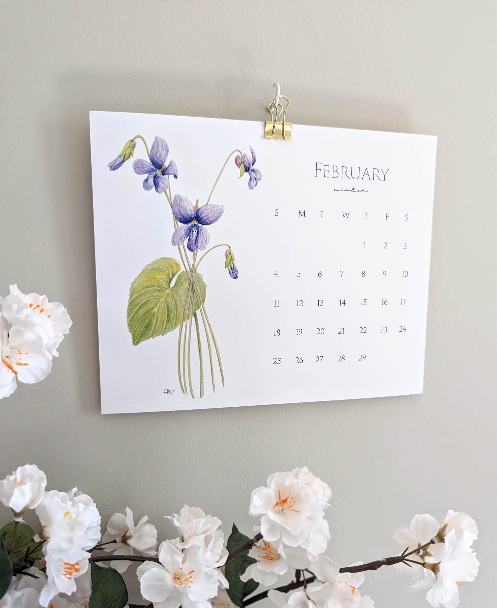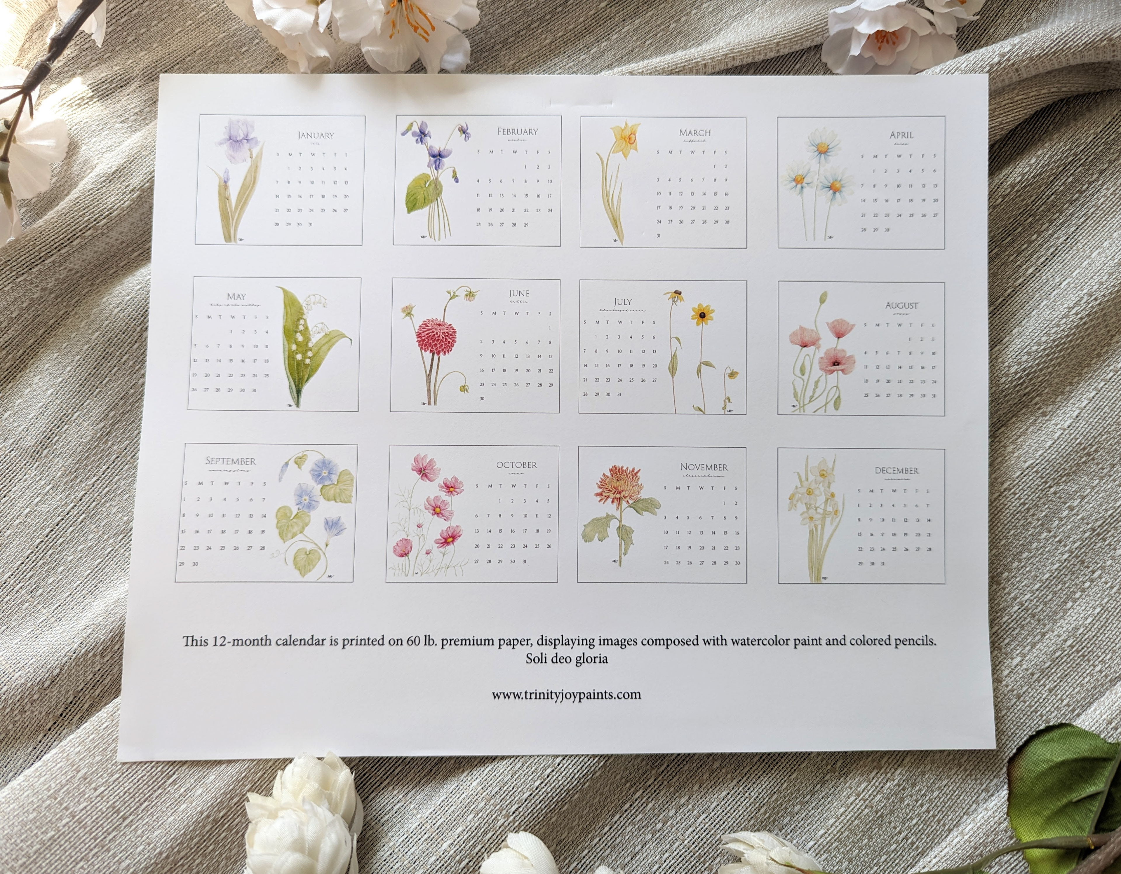 12-month calendar with botanical illustrations printed on 60 lb. premium paper